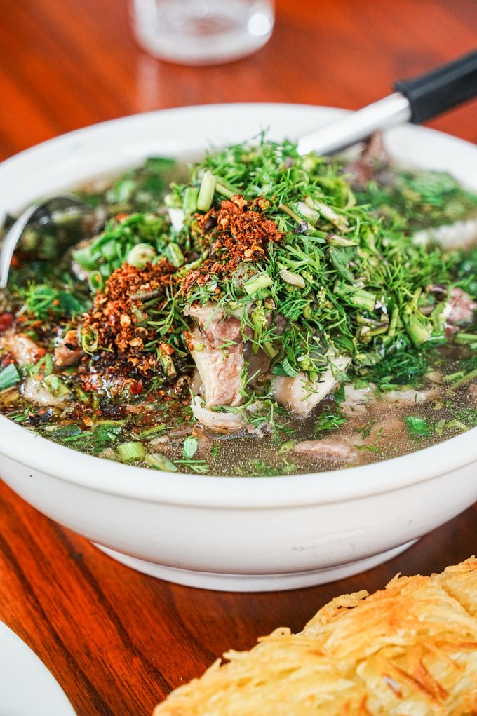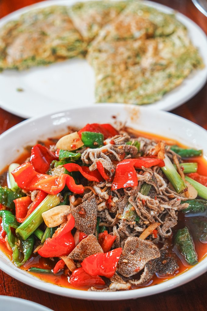 •美食推荐 ✔法坡撒撇:傣族超有特色的美食,用棒槌把牛肉敲打成肉泥,加入脱水后的韭菜,再配上牛苦肠熬的苦水、缅芫荽、小米辣等佐料,吃的时候蘸着牛肚、牛肝、米线,口感丰富,虽然味道有点苦辣,但真的很上头,清凉泻火一绝~ 推荐店铺:可以去当地的傣味农家乐找找,很多都做得很正宗。