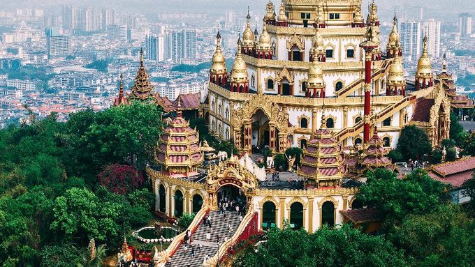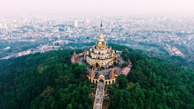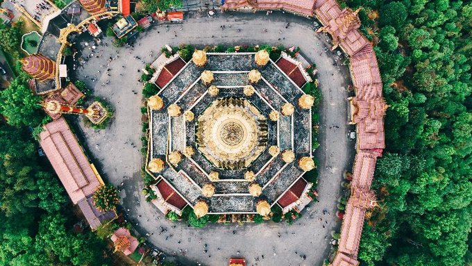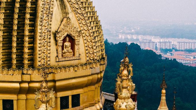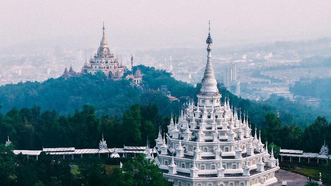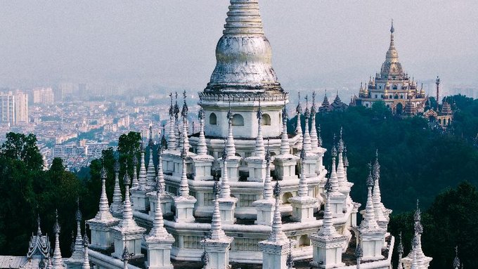 来到了勐焕大金塔和勐焕银塔。早就听闻这两座塔是德宏的标志性建筑,当申请的航拍器升空的那一刻,我被眼前的景象彻底震撼了。