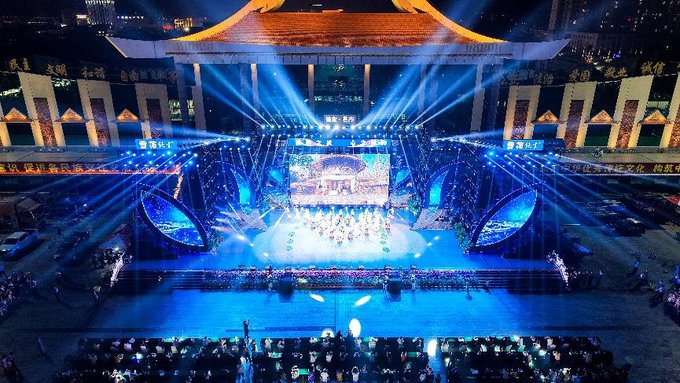 夜幕降临,夜晚的芒市广场热闹非凡,2025 年芒市泼水狂欢节迎宾晚会在此举行。