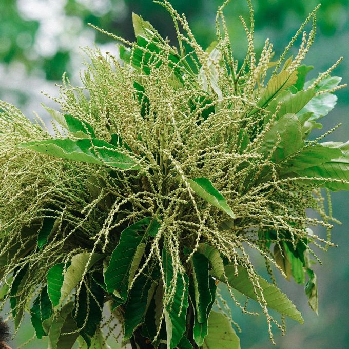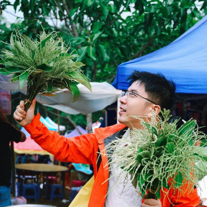 整座菲洪山上,都是来采摘和购买赏建花的当地人,密密麻麻,路边整齐码放着新采的赏建花,草茎上的绒毛在阳光下泛着柔光。据说,赏建花是水神撒在人间的头发,叶片上的纹路就是水的脉络。“