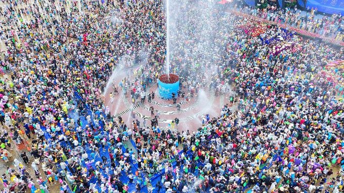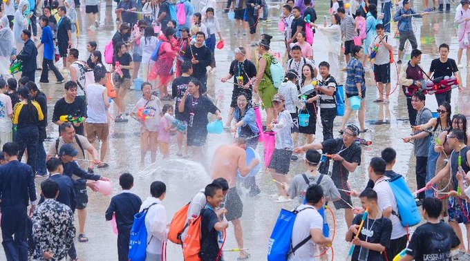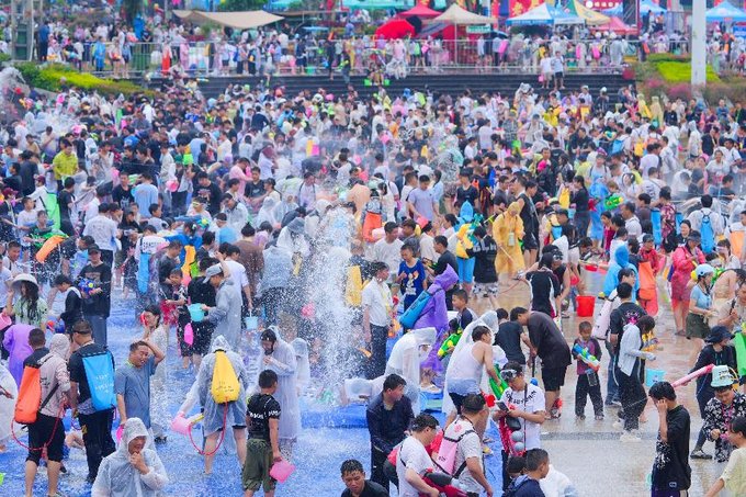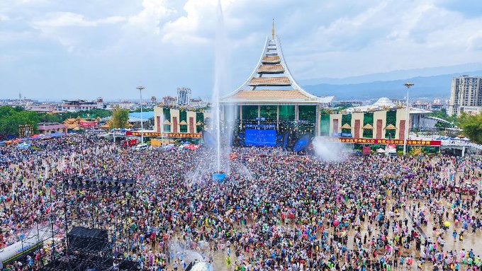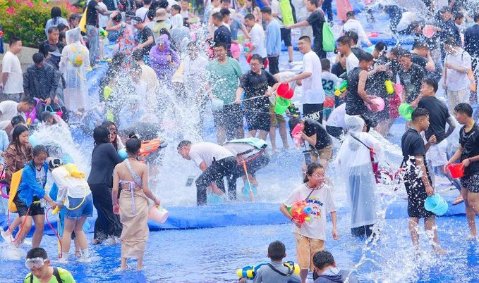 最后一站,则是陇川的欢乐水世界,泼水节的狂欢从传统广场延伸到现代水上乐园。