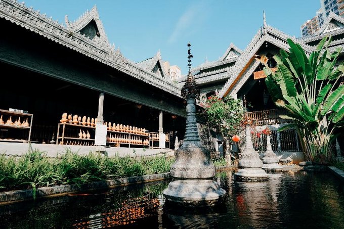 银塔则以银白色为主色调,塔身的浮雕细腻柔和,与大金塔遥相呼应。