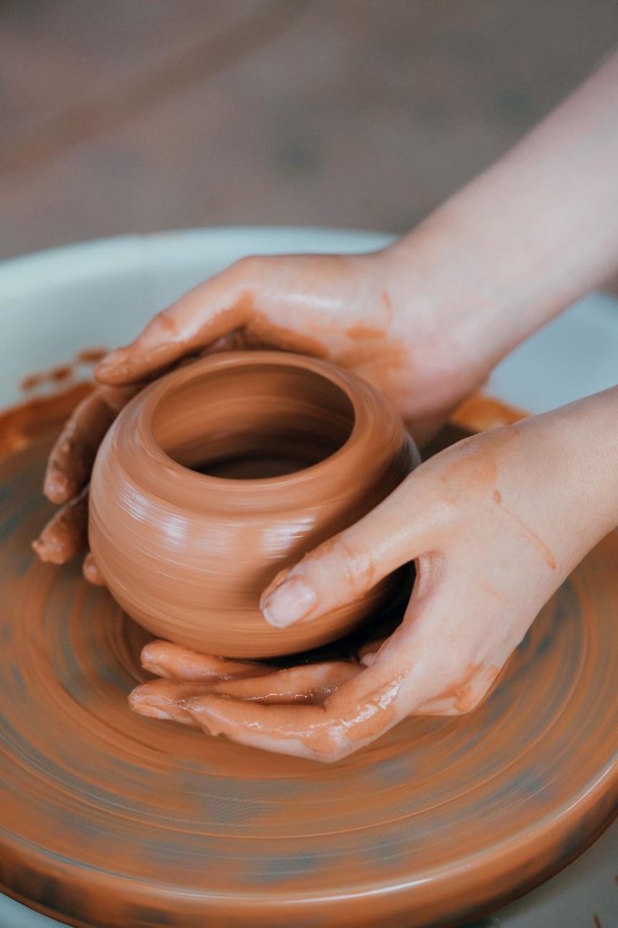 我尝试着制作一个碗,一开始手总是控制不好力度,陶土在转盘上歪歪扭扭,经过师傅的耐心指导,慢慢掌握了技巧,看着一个碗的雏形逐渐成型,心中充满了成就感。