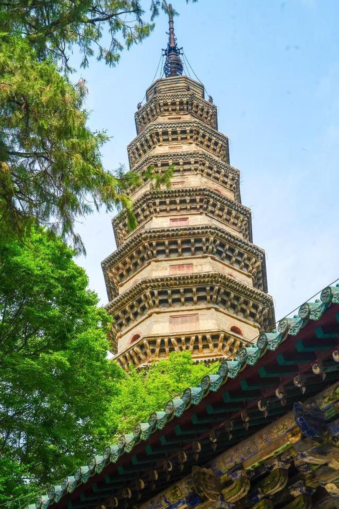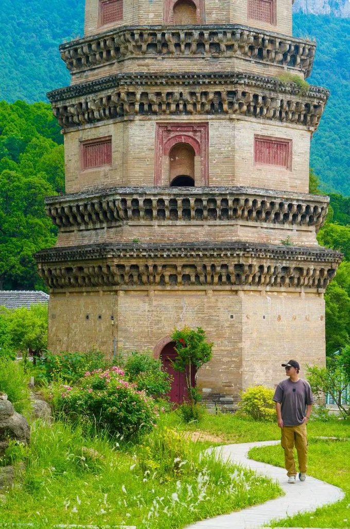 逛完主体建筑,可以前往寺庙后院,这里有始建于唐天宝十二年的辟支塔,北宋淳化五年重建,历时63载竣工。塔高55.7米,为八角九层密檐楼阁式砖塔,也是灵岩寺的标志性建筑之一,八角塔身的造型与山林结合,不仅可以拍照打卡,遥望佛塔也能开启一场穿越时空的对话,感受属于内心的宁静。