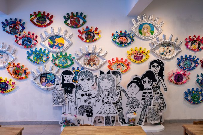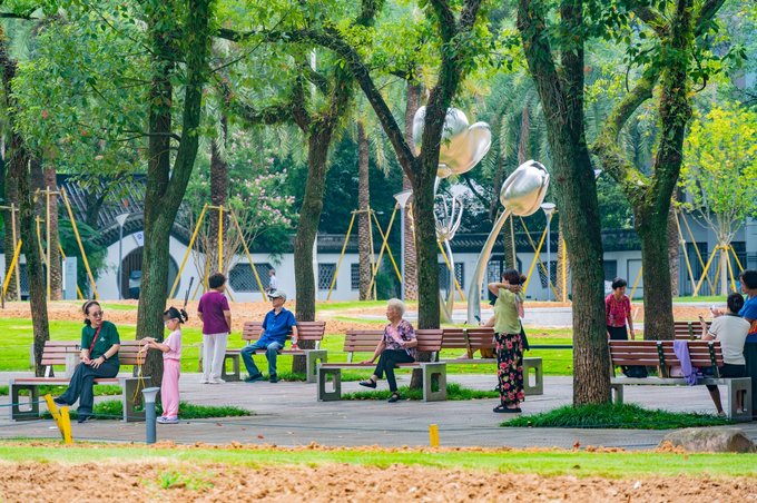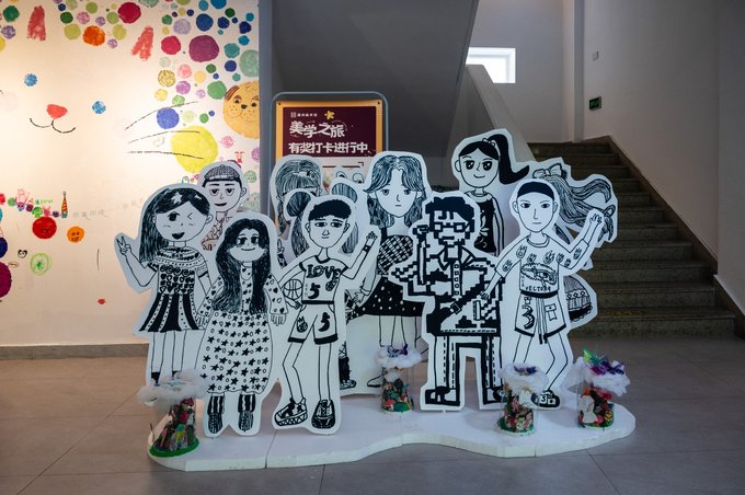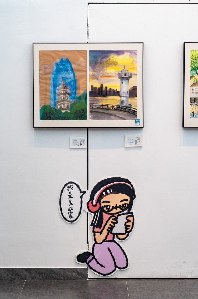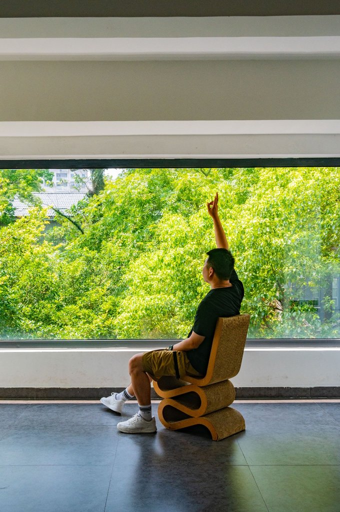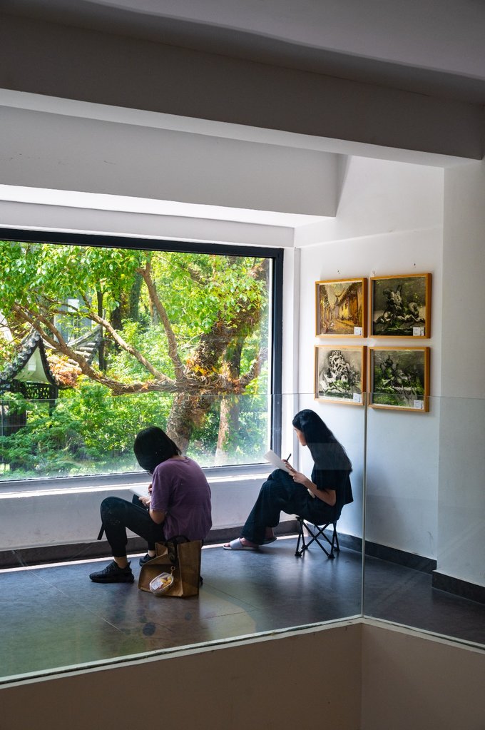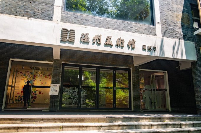 此外墨池公园内还有一座 温州 美术馆。这里是看展的好地方,同时也是city walk途中一处很不错的歇脚地。美术馆参观不收费,门口登记一下身份就可以进入。馆内一共有四层,可以乘坐电梯到四楼,然后一层层往下走着拍,其中二层的大玻璃窗拍照十分出片。
