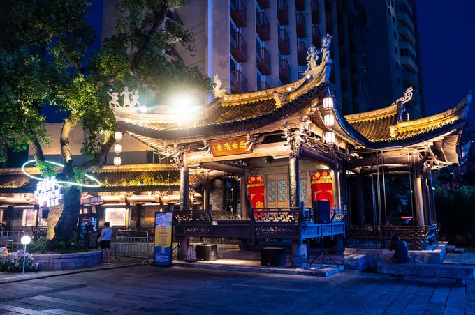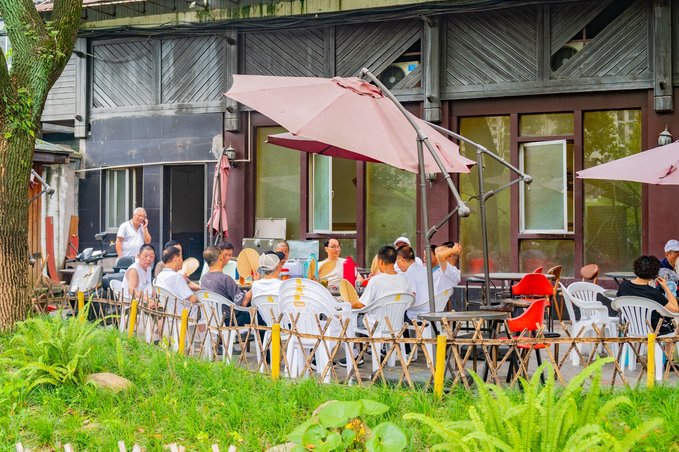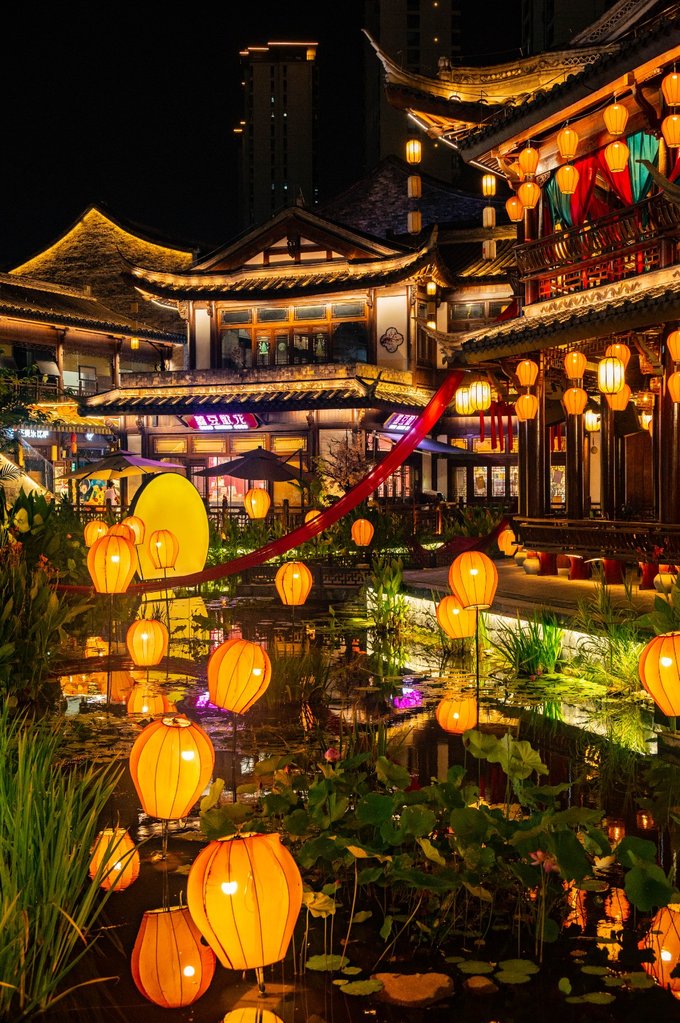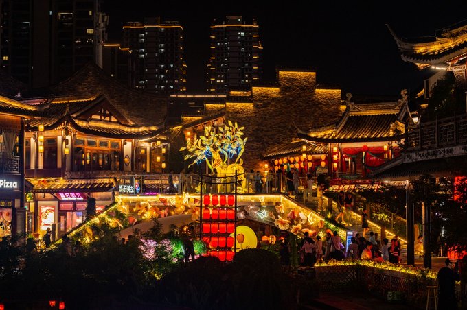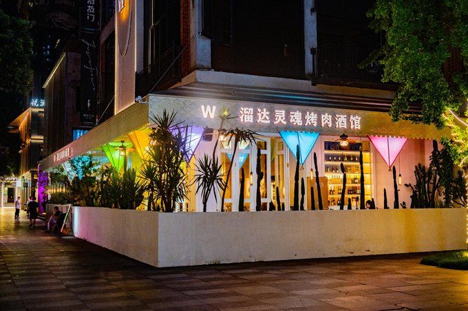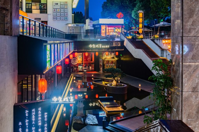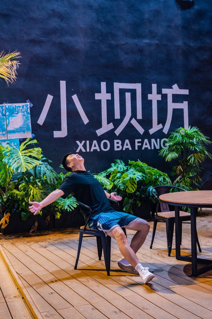 首先说说小坝坊,这是一片沿河的老居民房,如今被爆改成了一块文艺宝藏地。这里有咖啡、酒肆,还有很多特色小店等。街区内也有很多创意拍照点,建议晚上来逛逛,吃点宵夜,喝点东西。