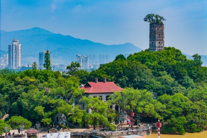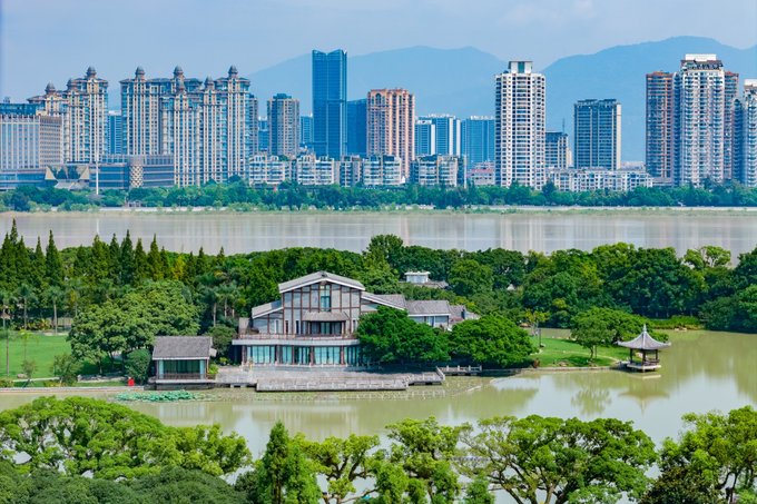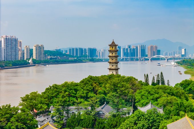 温州 巽山公园,巽山为晋郭璞建鹿城是所名九斗山之一。因在城东南,依古代易书巽之方位,故称巽山。来这座公园的外地游客,不外乎都是奔着 温州 市区的经典机位——“古今同款”,即公园内的巽山塔与 温州 世贸中心在同框的位置拍摄。建议在傍晚时候过来,也可以等到日落后的蓝调时间,巽山塔到时候也会亮起灯光。
