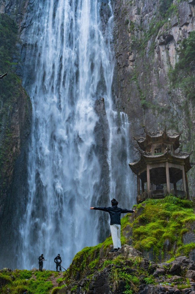 二漈是位于中段的水帘洞,从上面俯瞰的时候,有让我震撼到。二漈需要从瀑布后方穿行,在这里奔跑可以拍出宿命感满满的大片。不想湿身的游客,可以自备雨衣,感觉雨伞都挡不住,哈哈。不过如果是气温较高的夏季或者秋老虎,湿身一下也没有什么不好,就是要保护好相机等一些数码设备。