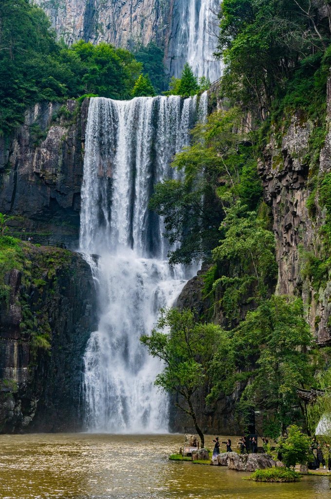 百丈漈的游玩路线设计的也很好,建议从上往下走,这样更节省体力。也可以从山下的入口进,走到山顶出口,这样感觉更有“习武者”的韧劲,哈哈。百丈漈共有三级瀑布群,总落差高达353米,2013年获吉 尼斯 “ 中国 最高瀑布”认证。其中一漈高207米( 中国 单体落差最高瀑布之一),悬空直泻,气势磅礴。瀑布下的亭子是拍照最佳位置,但飞溅玉珠,近距离拍摄多半会湿身。