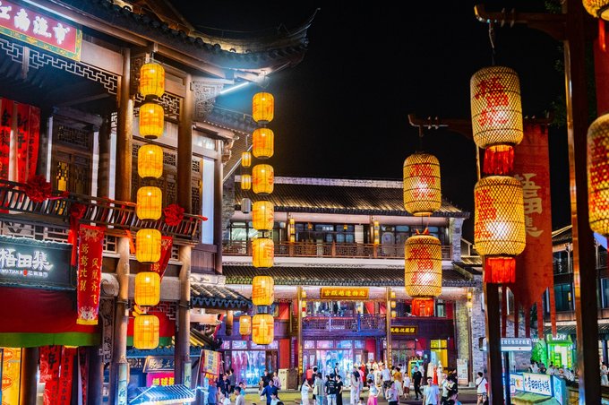 还有一条梧田老街人气最旺!梧田历史上就是温瑞塘河畔重要的商贸集镇和水陆码头,老街承载着 温州 的城市记忆和商业传统。如今的街区充满活力,可以吃到各种 温州 小吃以及市面上知名的奶茶店、小吃店在这里也都能找到,古风建筑的夜景拍照十分出片。