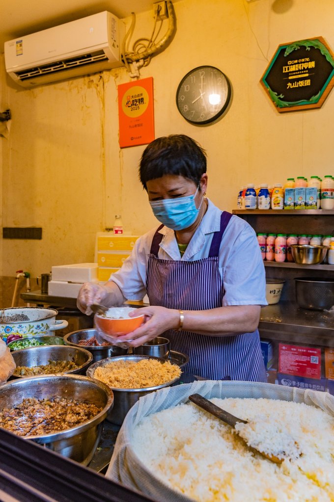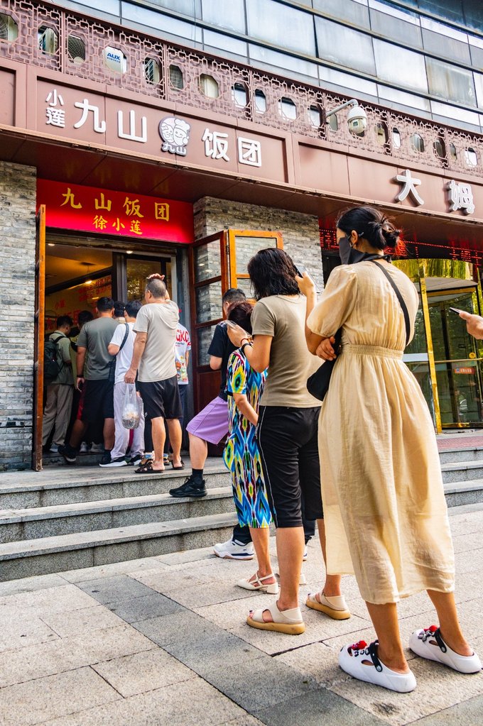 真的发现是从早八开始,就会有人穿着睡衣开着车,出来排队吃饭团。这里就来细数一下,在 温州 吃的几顿漂亮饭。首先第一顿早饭去的是小莲九山饭团,一家人气超高的饭团店,要做好排队准备。来了才知道,饭团里还可以加油条碎、香菇肉汁、 东阳 寸肠、榨菜、肉松、咸蛋黄等等超多料。XX点评给他家发的奖牌还在后面的墙上挂着呢!