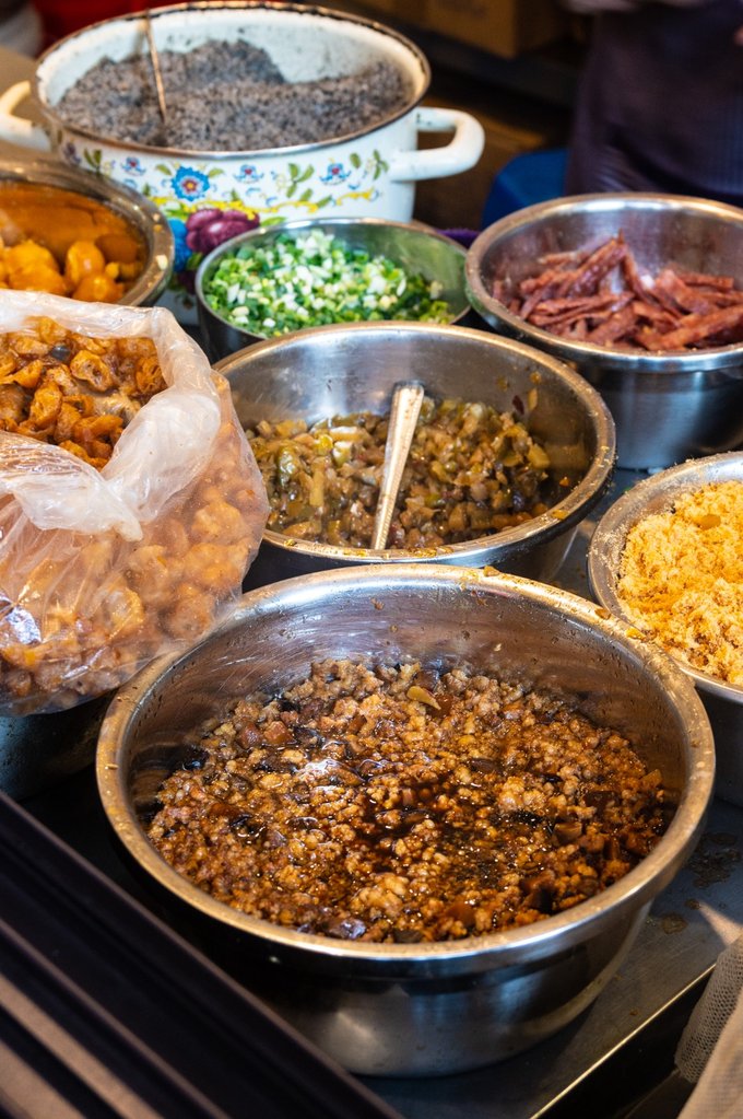还去了一家早餐店叫做娟娟早点店,同样是糯米饭,和小莲九山不一样的是,它是装在碗里吃的。同样可以加许多料,配上一瓶一鸣奶,就是 温州 人最熟悉的早餐啦。顺便也说下我们住的 温州 大酒店,其实酒店的早餐也是可圈可点,可以一站式吃到 温州 特色小吃, 比如 :猪脏粉、鱼丸、肉燕等等。