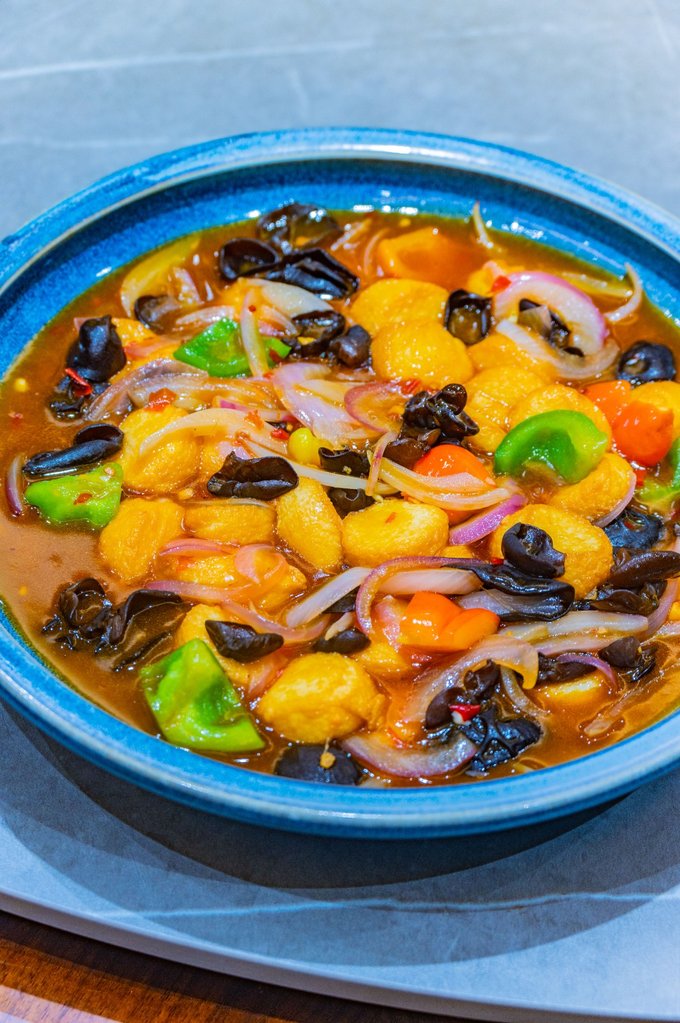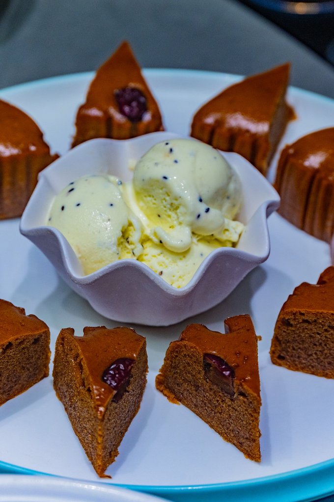 还有一家公园锦里,这家餐厅的装修和菜品都要更精致一些,环境很好,周边就是步行街。在这里也吃到了不少的特色菜,其中还有一道发糕配冰淇淋的甜品,是餐厅的人气菜品。