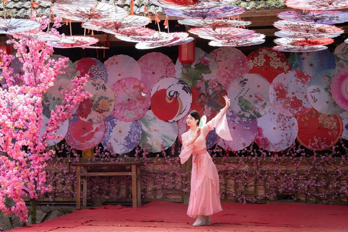 景区里还有精彩的表演轮番上阵,让游客停下来歇脚同时舞蹈、戏曲的演出。