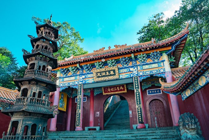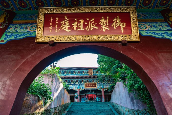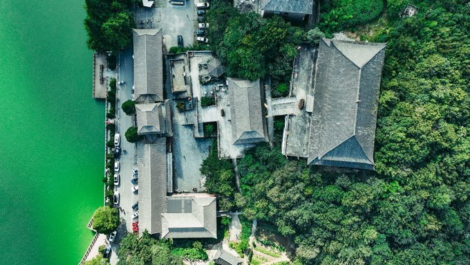 湖边的道教古建群便在山峦森林景中伫立,这便是九宫山的道教圣地,也是华中地区最完整的道教建筑群之一。