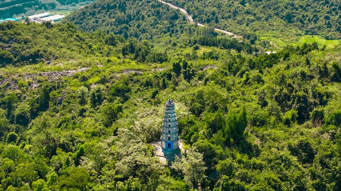 沿着寺庙后山的小径往上走,两侧常有曼珠沙华。在小径延伸处有一座多佛塔,塔身由青石砌成,像在无声地讲述着通山千年前的故事。