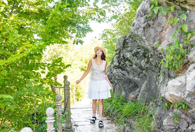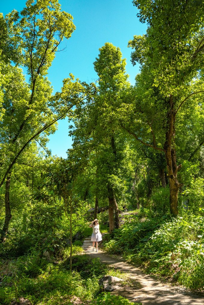 沿着石阶往里走,水声是向导,有时是细流从岩缝中渗出,有时是激流的溪涧。阳光透过层层叠叠的树叶筛下来,在地上落满铜钱似的光斑,走累了便坐在潭边的石头上歇脚。