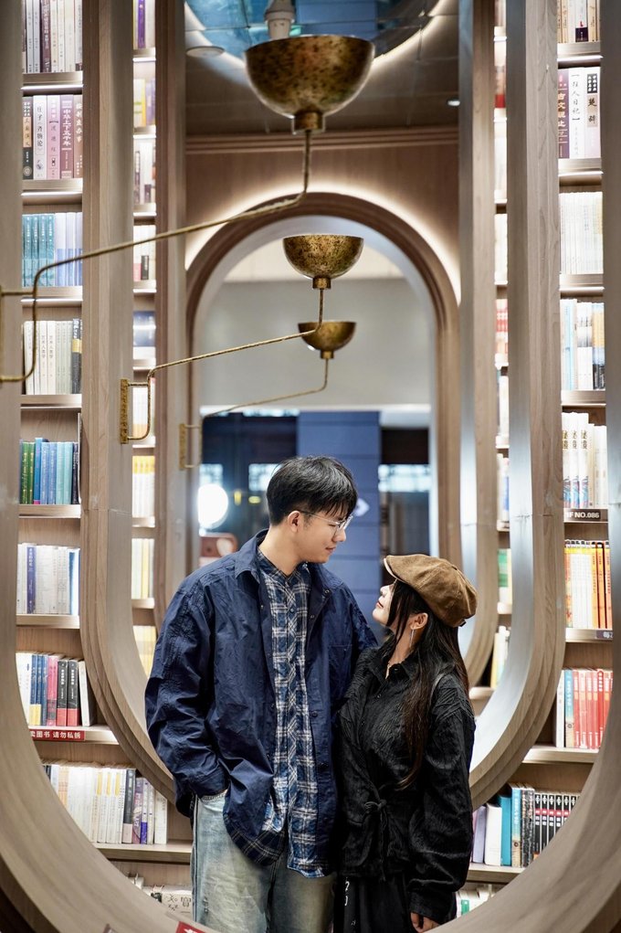 Day 1:淄博,一场烧烤与书的奇幻夜 抵达淄博,第一站便直奔网红打卡地 —— 海岱楼钟书阁,刚踏入大门,就被眼前的景象震撼。这里完全不像传统意义上的书店,更像是一个充满奇幻色彩的异次元空间。蜿蜒盘旋的楼梯搭配着错落有致的书架,暖黄色的灯光透过玻璃折射出斑驳的光影,营造出静谧又浪漫的氛围。我们一会儿捧着心仪的书籍静静翻阅,一会儿又拿起手机捕捉这美好的瞬间,生怕错过青春里每一个值得珍藏的镜头。