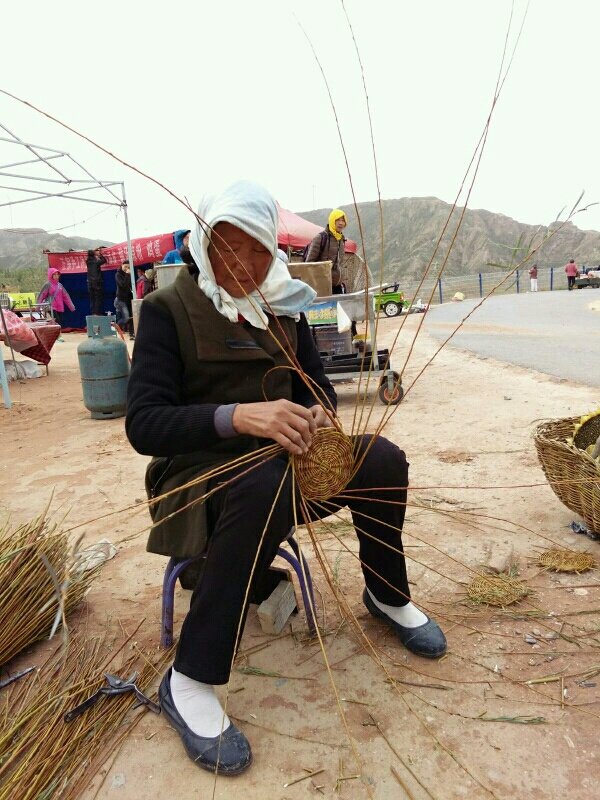 当地大妈编柳条筐