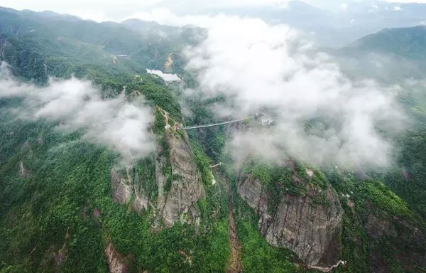 石牛寨玻璃桥坐落于湖南岳阳平江县石牛寨景区内,玻璃桥长约300米,垂直高度达180米,以奇险、刺激著称,又名“好汉桥”,是迄今为止全世界第一条全透明玻璃桥