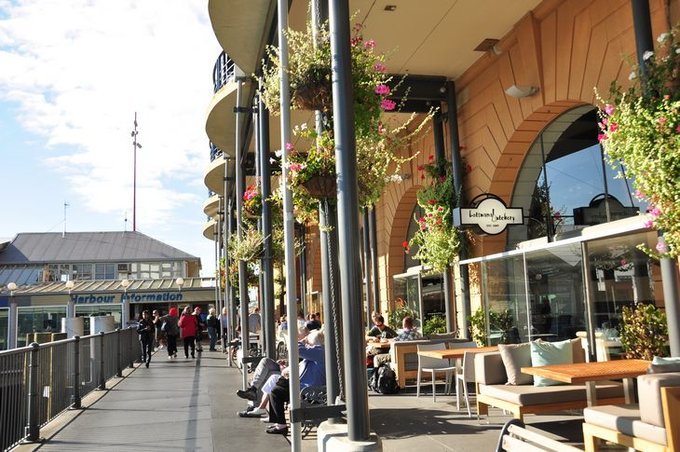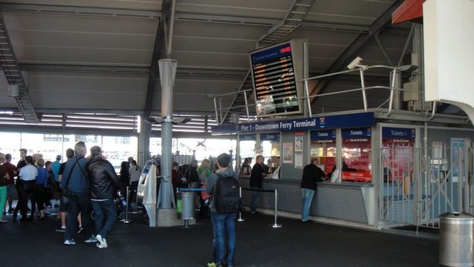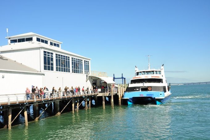 沐浴着秋日阳光的奥克兰街景,所有的一切看上去都那么明亮、那么干净,那么风情万种。 我们闲逛着就来到了海边轮渡码头,感觉这里类似上海的外滩,游人如织却不喧闹,面海的那一排咖啡屋很浪漫。购买了轮渡票,我们准备去对面的小岛一览胜景。