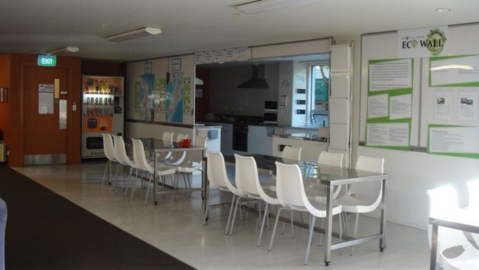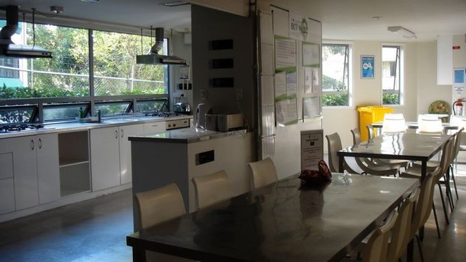 酒店 座落于一条安静的街道, 类似国内的锦江之星,但有很大的公用厨房和餐厅,以及配备的餐具。我们在这里住了四晚,慢慢发现,这里居住的大多数是在校的学生,所以一到用餐时间很热闹。 第二天早晨,在房间里吃了面包,喝了咖啡,我和老夫子去了公用地方转了一圈(从这天起和雨果夫妇就不再同吃同住享用套房了),只见餐厅打扫的很干净。 这天是周五,餐桌上有免费的小点心,我们也享用了一袋带出门路上吃。