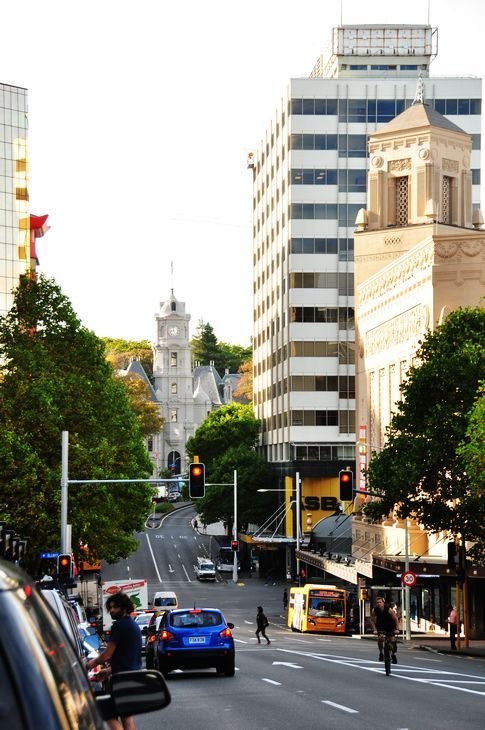 和雨果夫妇集合后,走出酒店,往市中心而去。 天高云淡,阳光灿烂!气温不冷不热,很舒服的秋日。 回想我们此行总体天气很不错,尽管有几次下雨,都在行驶中,无伤大雅,好像带了雨伞也没派什么用处。原以为上福克斯冰川会遭遇寒冷气候,实际上也没有想像的那么可怕,为了节省空间,最后在铁卡波把一件薄羽绒衣也处理掉了。 在南岛享受了十五天田园般诗意的日子,安静惯了。眼下来到奥克兰,看到了高楼,看到了路上的行人,又闻到大城市的气息,顿时有了另一种视觉新鲜感。