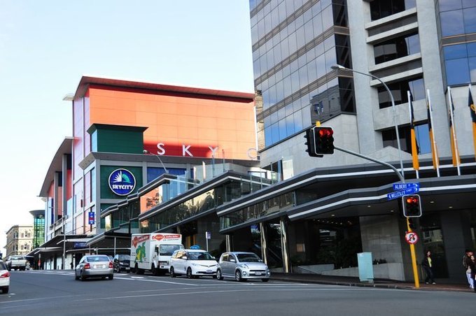 从基督城飞奥克兰很顺利,到达目的地已经是晚上了,我们索性在机场的麦当劳用晚餐。想想时间真快,还记得刚到奥克兰时,我和老夫子也在这里用了简餐后飞基督城的,转眼半个月过去了。 天色已晚,我们要了一辆出租车,直接把我们送到预定的酒店,办完入住,各自回房间休息。 奥克兰是大城市, 酒店住宿费用水平相对高,雨果夫妇经过再三挑选,在网上预订了一家离市中心很近的经济型酒店。 地理位置超好,走到天空塔(Sky Tower)也就十来分钟吧。