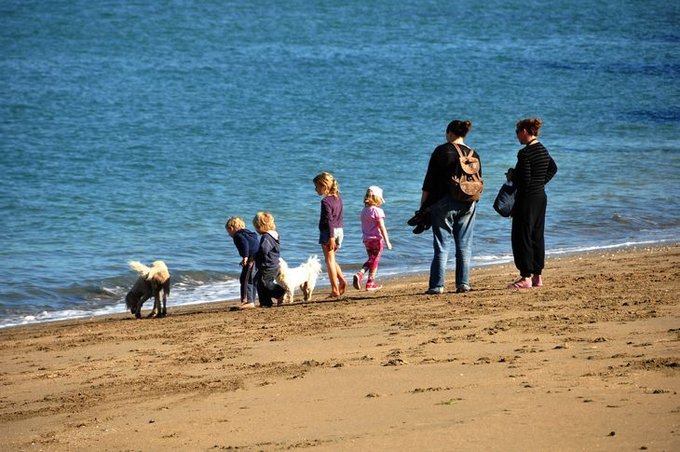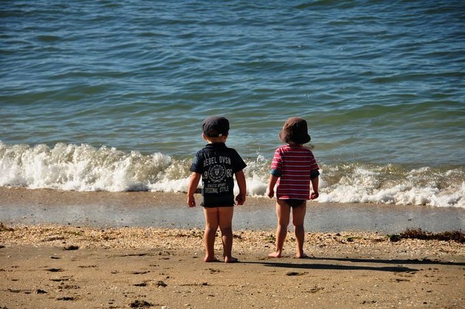 没多长时间,船就靠岸了。小岛上有很多漂亮的建筑和遮荫的大树,环境很优雅。 先去海边,那里有儿童乐园,也看到有不少孩子在海边戏水,真是佩服这些孩子的耐寒性。我们都穿着厚绒衣,这些小人人居然就光着屁股在沙滩上玩。如果我们家小卷毛如此下水一定就会感冒吧,两种国度绝然不同的育儿方法和效果。