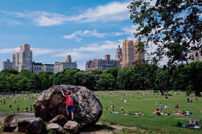 这里是纽约的后花园,占地约3.4115平方千米,长跨51个街区,宽跨3个街区,面积达340万平方米,是世界上最大的人造自然景观之一。它建在在高楼林立的曼哈顿中心,是纽约这座繁华都市中的一片静谧休闲之地。 这里,满目的葱绿可以养眼,静静的河水可以养心,活泼的小松鼠可以怡情… 来这里免费吸氧啊,约不?
