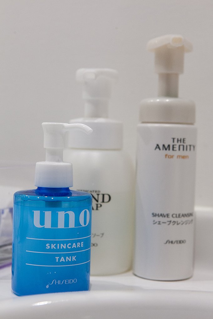 沐浴后,男士可以使用免费的一次性剃须刀,女士也有各种免费护肤品。木梳虽然不是一次性的,但分为使用过和未使用过的两个篓子。每天都有工作人员清洗,然后放入紫外线灯箱消毒。