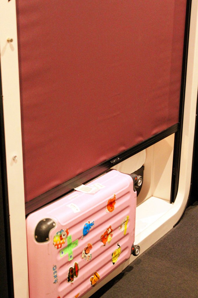 大概是为了保证胶囊内空气流通,每只胶囊都没有门,只有一个卷帘以保护游客的隐私。当然,透气的卷帘无法阻止声音的袭扰,不远处的洗手间及淋浴室的声音会若隐若现地传进来。深夜,走廊里此起彼伏的鼾声也会响成一片,旅客可以带上耳塞隔音。