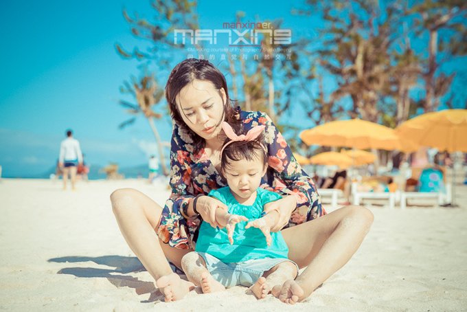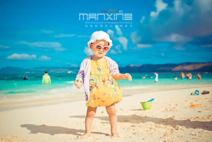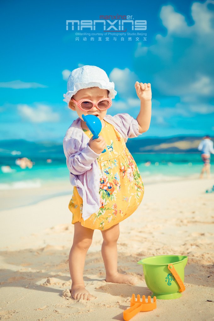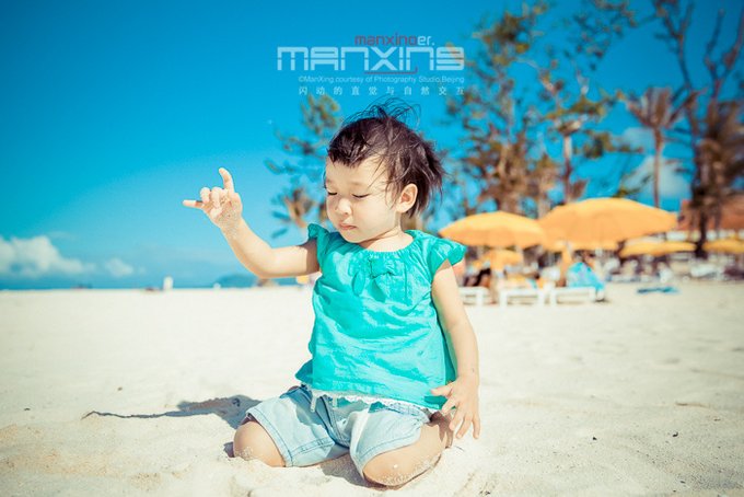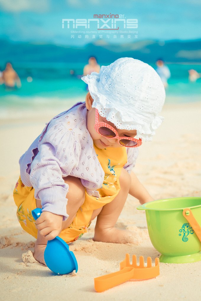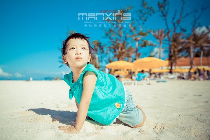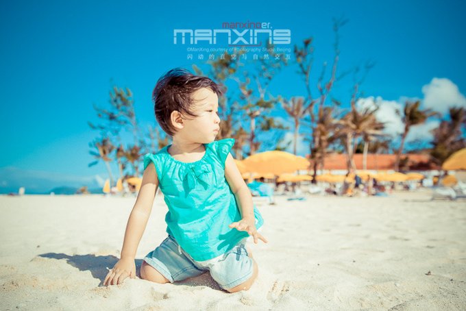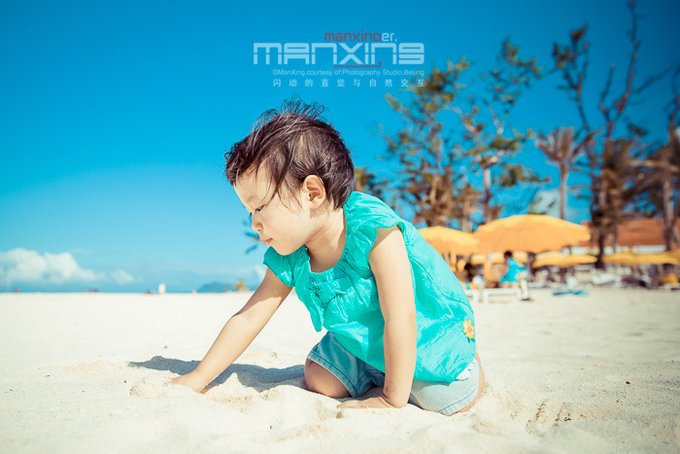 吹海风弄沙的萌娃。我特别满意的是娃的被风吹后的发型,瞬间给整幅画面增加了动感。
