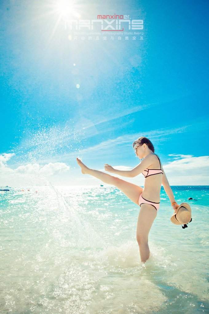 2、让被拍者翻滚或跳跃在浅海滩,抓拍最性感的姿态