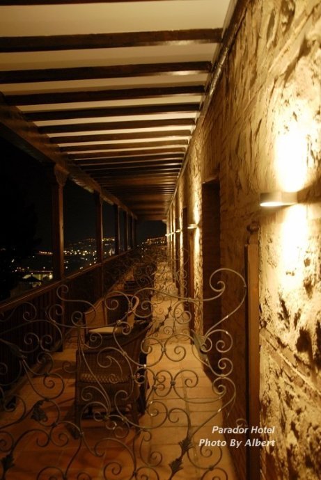 Parador中文名字是帕拉多国营酒店,这个酒店集团在西班牙各地收购旧时的古堡,然后改造成内部现代化的酒店。古堡的位置通常都是离市区不远,坐落在山坡上,特别是有个共同的特点就是视野极好,可以站在露台看到整个古城区。我知道在西班牙托莱多,昆卡,科尔多瓦等历史古城均有这个连锁酒店。 夏天度假旺季时需要提前三个月预订,我1月份过来的,也提前了一个月预订。