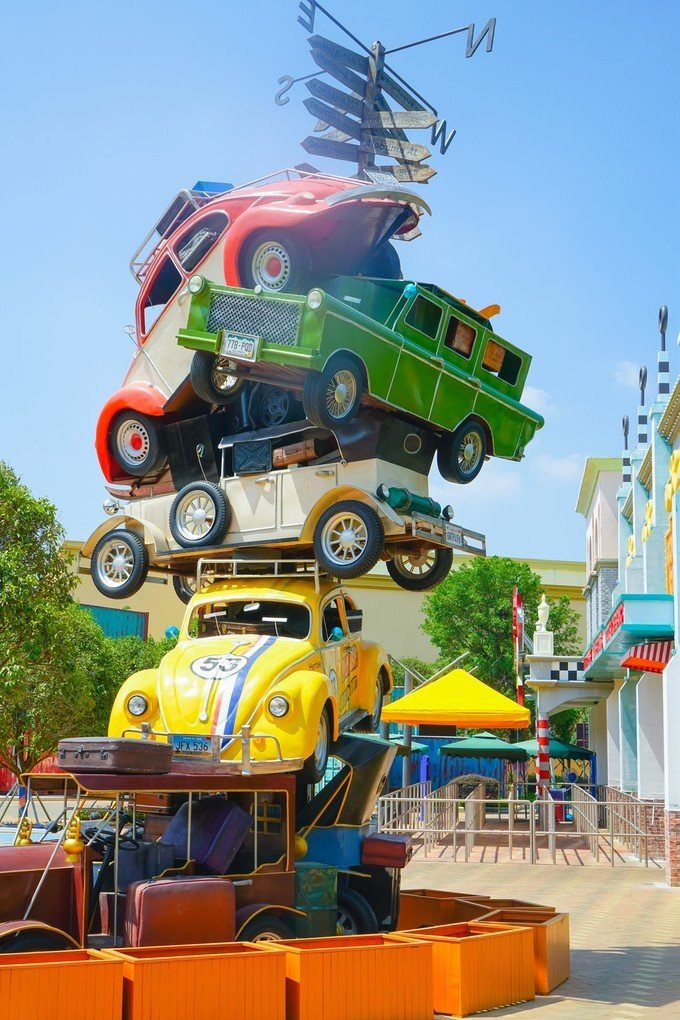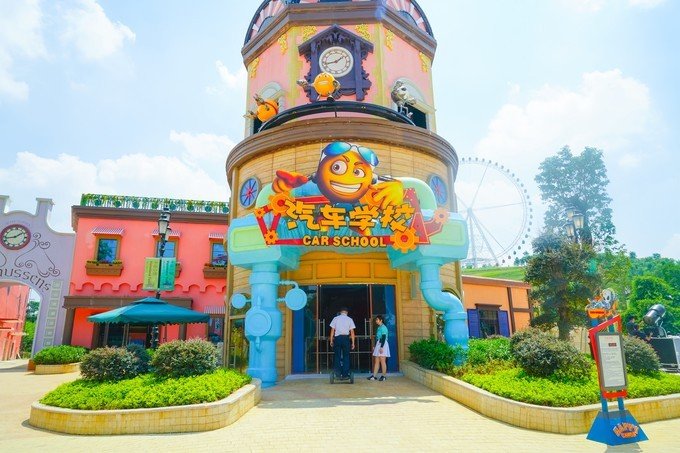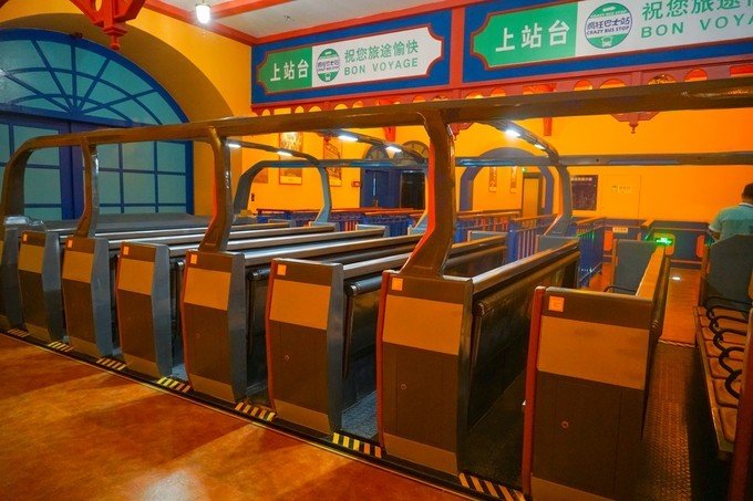 【汽车学校】 这是一款适合小朋友玩的游戏,里面的”球仔“真是超级萌。适合全家亲子游的必选经典项目。游客戴上立体眼镜,坐在装有互动射击武器的轨道车上一路闯关,并根据命中率的高低来获得相应的积分。