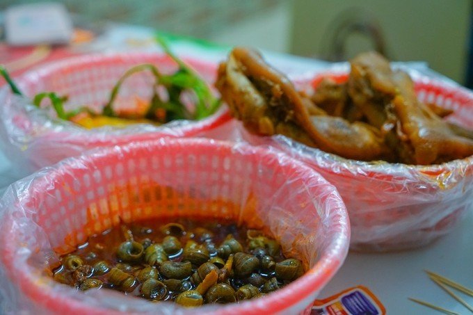 看到这些配料,顿时感觉亲切,什么都想要。如果不能一直吃,那就要一次吃个够。所以配料能加就加,鸭脚猪手一个都不能少。鸭脚好像炸过,外层很焦脆,非常喜欢。猪手很大个,最后五个也被我们收了。 价格便宜的吓人:螺蛳粉:7元 鸭脚:2元 猪手:7元 胡吃海塞下来,人均也不过20块,顿时觉得柳州人民好幸福。