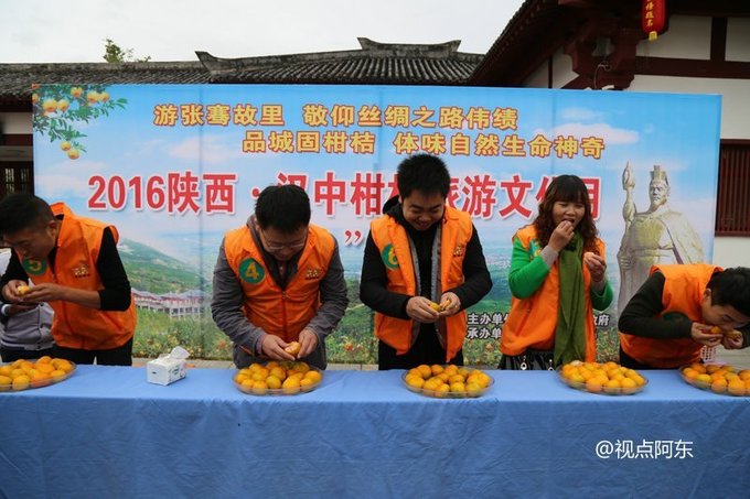 大自然于人类真是恩赐,每个季节都有不同的水果可供品尝。金秋十月,又到了桔子丰收的时节。在陕西汉中的城固县,金灿灿的柑桔装点着漫山遍野,成了这个金秋最诱人的一道风景线。 10月14日至16日,我来到城固县,先后参观了桔园景区、魁星园、柑桔研究所、新天地猕猴桃产业基地、科瑞思矿业有限公司、张骞纪念馆、天然谷生物科技和城固酒业等,对城固的旅游、果业和工业等的现状与发展有了比较全面的了解。15日上午,在城固县桔园景区,一场别开生面的吃桔子比赛,吸引了众游客与果农共同分享收获的喜悦。城固桔园里,漫山的桔子渐熟,景区又将迎来采摘旅游的丰收季。从9月27日至10月31日,在为期一个多月的“城固柑桔旅游文化月”中,将开展网络大V游桔乡、“魅力桔乡”摄影大赛、采桔品桔比赛、魁星园科举文化展示、自驾车队游桔乡、健身舞展演赛、旅游商品展销、城固美食品鉴等丰富多彩的系列活动。 城固桔园牌楼前,美艳盛开的格桑花等如天然铺就的“迎宾大道”,赏心悦目引得众人驻足留影。进入桔园景区,需购10元的门票。从景区入口乘电瓶车前往观景台,一个来回为15元。桔园景区的桔子分属不同的果农,采摘费则统一为5元钱,可放开胃口吃。登高远眺,漫山的桔子黄绿相间,为田园小镇更添无限风光。因受严寒的影响,和去年同期相比,今年桔园景区的桔子不仅成熟要晚一些,而且产量也减了许多。于是乎,价格也自然提升了不少。去年在景区里购买桔子,普遍为一元左右一斤,而今则卖到了10元3斤。 城固县位于陕南汉中盆地腹部,是西汉著名外交家、探险家、丝绸之路开拓者张骞和享有“北斗喉舌”之称的东汉三朝太尉李固的故里。城固盛产柑桔,早在两千多年前就有“蜀汉江陵千树桔”的史载,唐宋时代城固“升仙蜜桔”就被朝廷定为贡品。自上世纪90年代中期以来,城固县依托气候、生态、土壤优势,把柑桔产业作为调整农业产业结构的首选目标强力推进,先后引进国内外优良品种80余个,筛选和培育出了兴津、宫川、日南1号、大浦、山下红、城固冰糖桔、少核朱红桔、城固麻柑等优良特色品种。 城固是国家林业局命名的“中国柑桔之乡”,主产区柑桔收入占农民人均纯收入的70%以上。截止2015年底,城固全县柑桔总面积达到22万亩,产量25万吨,产值6亿元,年出口5万多吨。被誉为“中国柑桔生态观光第一园”的城固桔园景区,每年在桔子开花及收获的季节,都会吸引众多的游客前来观光或采摘。桔园景区位于城固县桔园镇,地处县城以北15公里,距汉中市47公里。桔园镇镇域总面积186.5平方公里,全镇耕地面积14061亩,柑桔种植面积达51440亩。桔园镇是我国北缘地区最大优质柑桔基地镇,2015年9月被农业部认定为全国“一村一品示范镇”。 桔园景区是2007年城固县抢抓西汉高速开通重大机遇而率先开发的重点景区,是全国农业旅游示范点,也是汉中市倾力打造的“四园”之一。沿升仙大道拾阶而上,经会仙阁到达升仙台,只见周围山呈五行,水流太极,山环水抱妙呈阴阳太极图。奇特的地形地貌,不仅孕育着“一人得道、鸡犬升天”的美丽传说,更是造就了中国最北缘的优质柑桔生产基地。 据了解,桔园景区以千里秦岭为体,万亩桔海为裙,升仙文化为魂,累计投资逾亿元,修建了以升仙大道、会仙阁、升仙台、唐仙观等为载体的升仙文化主轴线,以柑桔文化和民俗文化为展示内容的桔颂长廊,以观景、摄影、休憩为主要功能的揽胜台和升仙湖水体景观,以祈福求愿和文化体验为主题的魁星园等景观节点以及车行道、游步道、停车场、厕所、客服中心、购物商店等基础设施和配套服务设施,设置了野外攀岩、桔林滑索、柑桔采摘、湑水放排等妙趣横生的参与项目,购置观光车20余辆,景区周边发展农家乐近30户。2010年,该景区成功创建为国家AAA级旅游景区,景区所在地刘家营村荣获“全国休闲农业与乡村旅游示范点”和“陕西省休闲农家明星村”称号。(视点阿东)