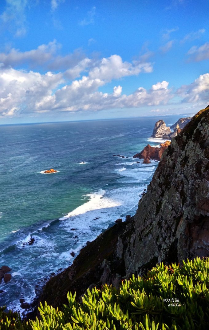 这里地势险峻,海边就是悬崖峭壁;海天一色,大西洋碧蓝的海水不断击打着峭壁;傲然伫立在这壮丽的海角,豪迈之情油然而生,路再遥远,也挡不住前行的脚步!