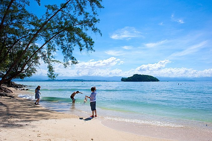马奴干岛上绵长的沙滩,很多带着小朋友的家庭在这里玩耍,和孩子一起坐在沙滩上,光着脚一起堆一座沙塔。玩累了,一家人躺在沙滩的林子里任海风轻拂,也是一种闲适悠然的愉悦。