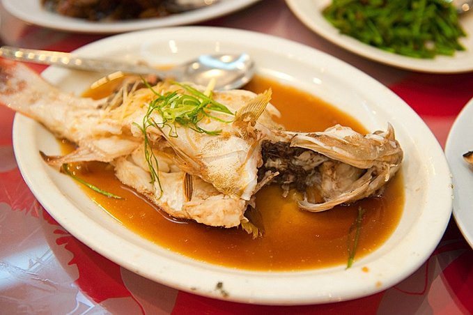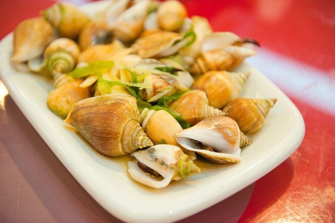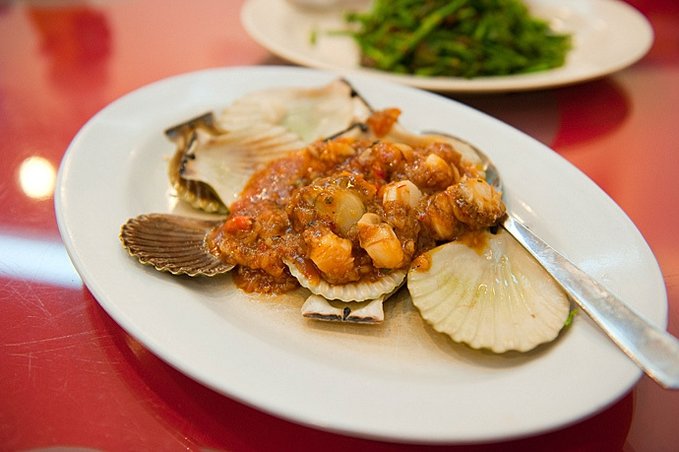 这家海鲜餐厅整整占据一条街,生意好到爆,所有海产新鲜又价廉,味道都很赞