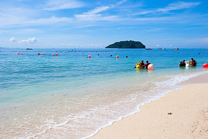 如果有人要问我“沙巴最值得推荐的离岛”,我第一个想到的一定是这里,原因很简单,东姑海洋公园距离沙巴首府亚庇市区仅15分钟左右的船程,不像外海离岛,需要舟车劳顿才能抵达。距离城市虽近,可这里的海水一样清澈,沙滩一样细软,最重要的是马奴干岛上除了拥有各种丰富的海上娱乐项目以及完善的配套设施外,还有五座岛屿中最最漂亮的活着的珊瑚礁群,以及数量非常多的五颜六色的热带鱼群,非常适合亲子游玩、戏水弄潮。