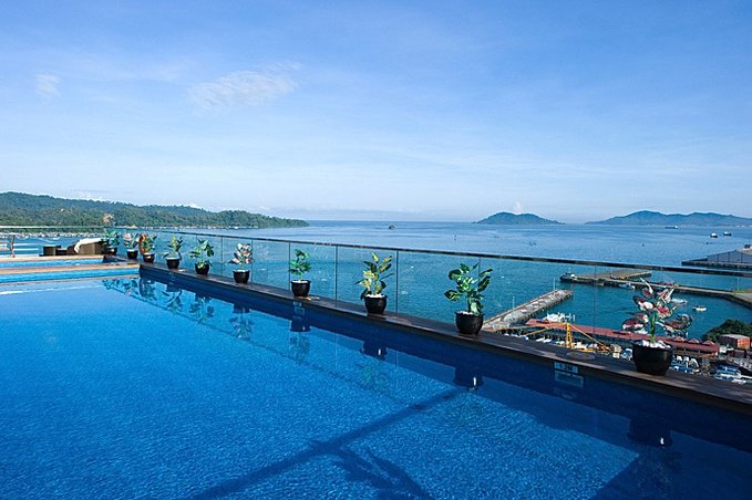 推荐一下本次在沙巴入住的一家性价比非常高的新酒店:格蓝迪斯酒店&度假村(Grandis Hotels and Resorts),酒店毗邻亚庇码头,步行3分钟左右就能到达;酒店楼下就是Suria Sabah Complex购物中心,大堂隔壁就是星巴克,酒店顶楼还有景观泳池和酒吧。地理位置优越,价格还非常实惠,最基础的房型大约人民币四百出头每晚。