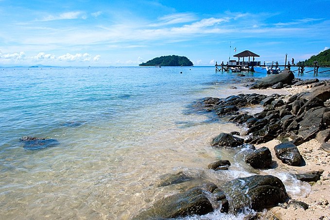 远处是东姑海洋公园的另一座小岛苏洛岛(Sulug Island)