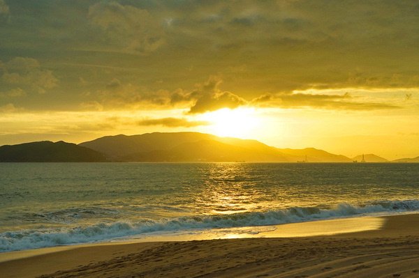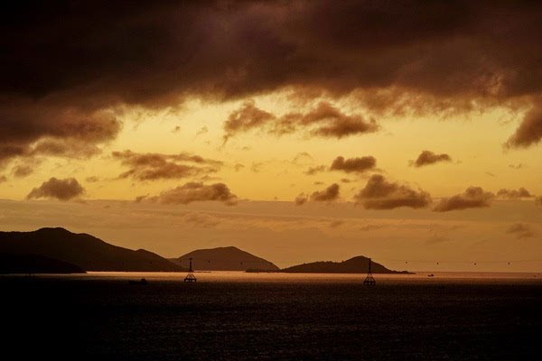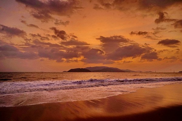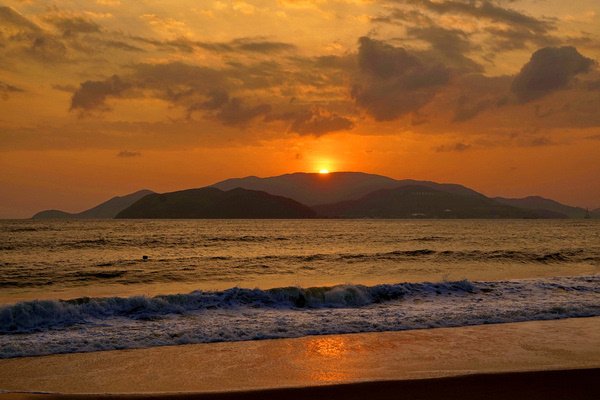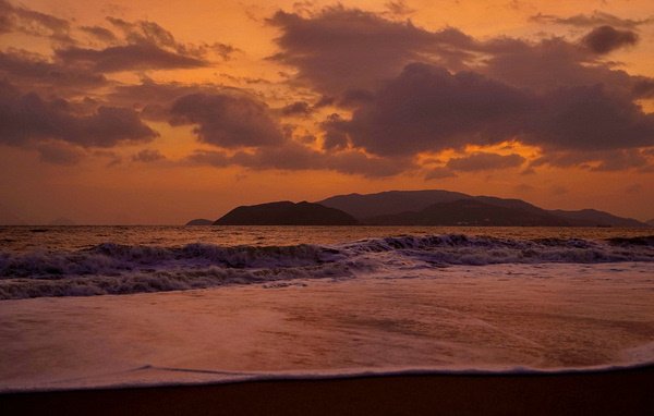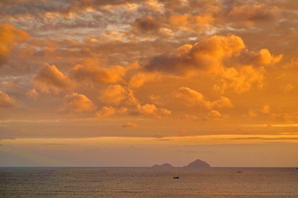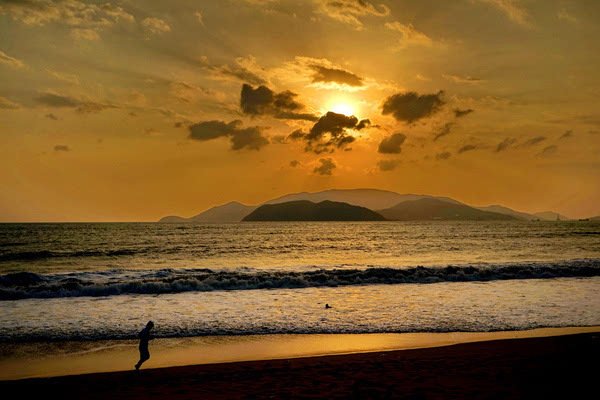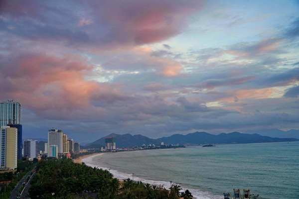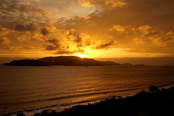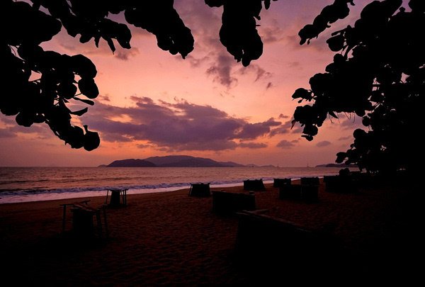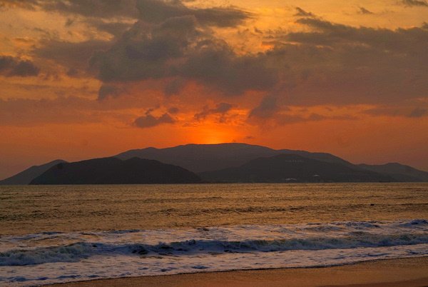 由于芽庄的海岸线是面向东面的,无法拍到落日,我期待能拍到完美的日出。早上五点起床,早早的等在窗前。但这个季节早晚多云,天边被厚厚乌云遮挡,而日出的方向又有岛和山,我没有拍到理想的日出,太阳一闪又进云层了。
