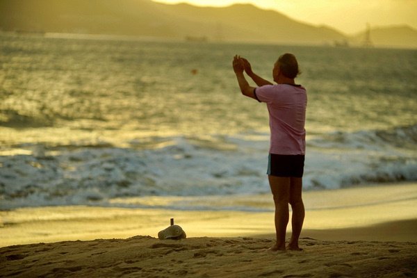 太阳还没有升起,这一段时间是摄影的最佳时段,我在海滩上快速行走,寻找我自己心中的画面。