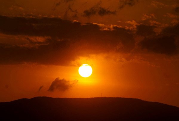 太阳终于跃出山峦,虽然是拍海上日出,可惜我所处的位置无法迎接海面上蓬勃而出红日。这一时刻是激动和兴奋的,我快速的按动着快门,不放过太阳行走的每一个瞬间。