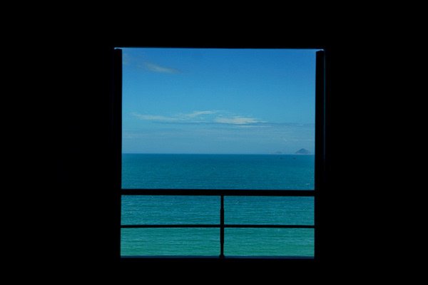 阿簪给我预定了一个靠近海边的酒店,叫“soho”。十二楼的海景房,但我还没有进房间在走廊里就不淡定了,先掏出相机拍下这个画面。
