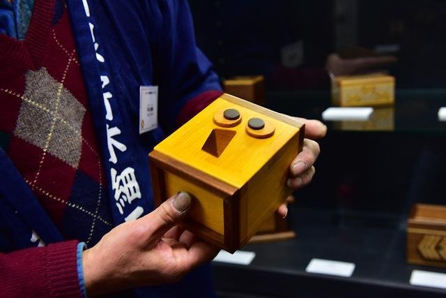 ▲我们绕与兴趣地跟着馆长来到了“关所寄木细工美术馆”,他告诉我们美术馆以寄木细工机关装置创作研究会创作的作品为主,同时展出具有历史价值的机关装置箱、家具、在箱根制作的嵌木手工艺品以及世界各国拼图设计大师的作品。