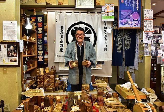 ▲话说寄木细工也称作木片儿拼花工艺,是箱根地区特有的一种传统工艺品,已有200年的历史。寄木细工运用木材的天然色泽拼成几何图案,根据木材的颜色来选择不同的木材,包括了樱花木、漆木、木瓜木、日本莲香木等。成品有信匣、宝石匣、杯垫、托盘等。其中最为有名的要数密码箱,由于设有保密设置,要打开箱子,必须懂得开启方法。于是,我们走进了箱根关所附近的寄木细工商店,也参观了关所机关设置美术馆。